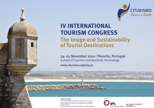 Escola Superior de Turismo e Tecnologia do Mar (ESTM/IPL), in Peniche, promotes the IV International Tourism Congress of Leiria and Oeste, on the 24-25 November 2010, with the theme “The Image and Sustainability of Tourist Destinations”, aiming to present and discuss national and international experiences about tourism valuation policies as far as territories, competitiveness, sustainability and promotion are concerned.